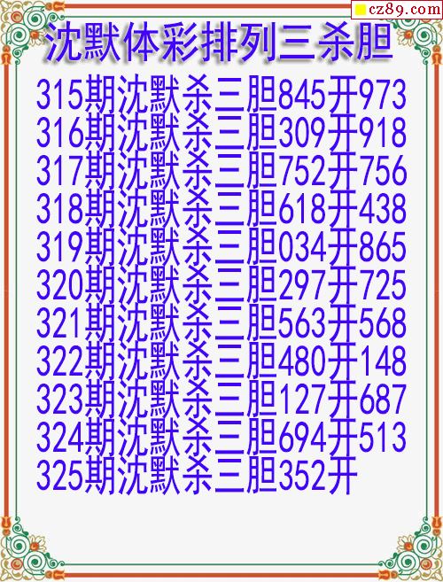 25年325期沈默体彩排列三杀胆图迷