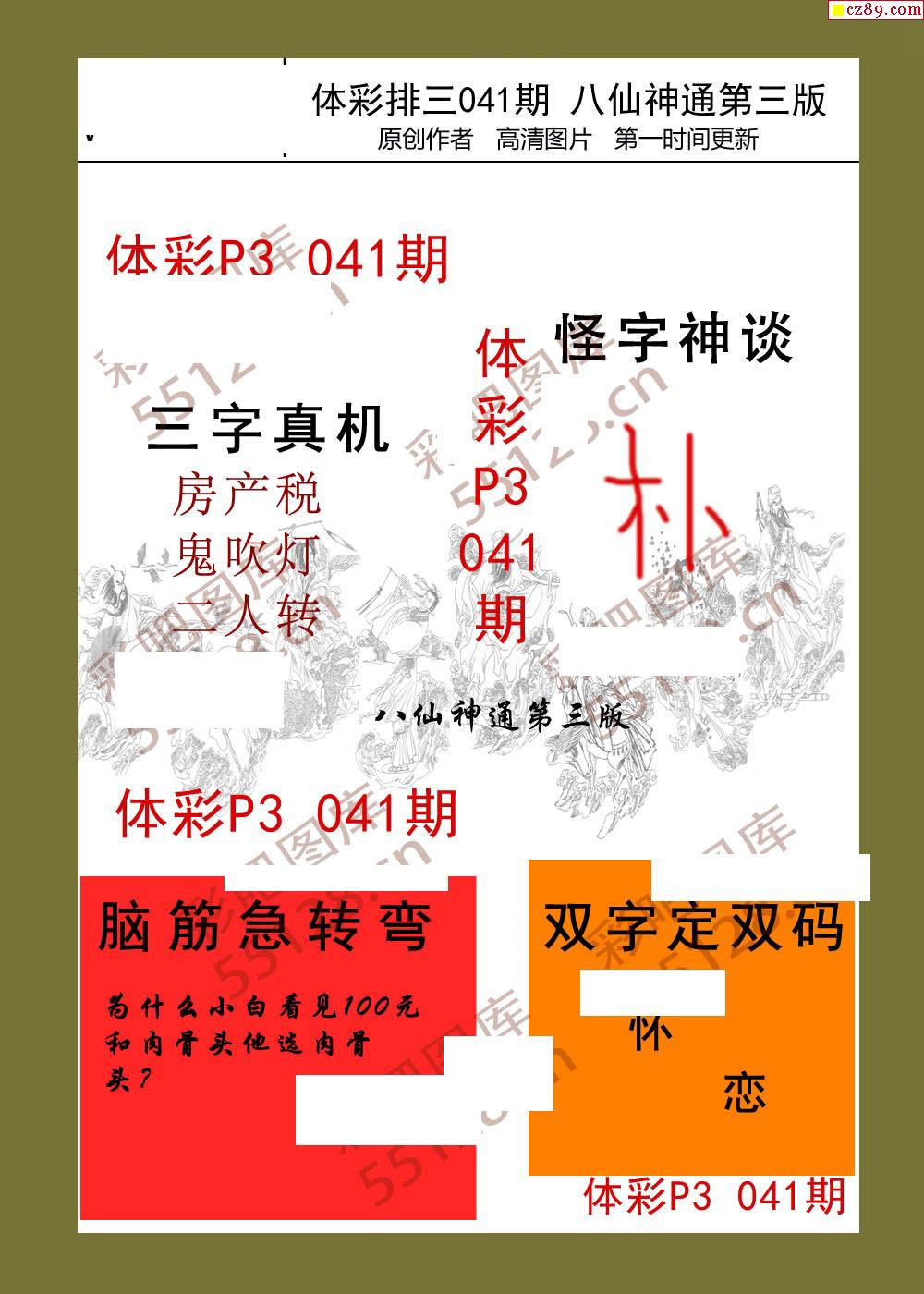 首页 > 排列3图谜 > 八仙神通系列041期体彩p3图迷