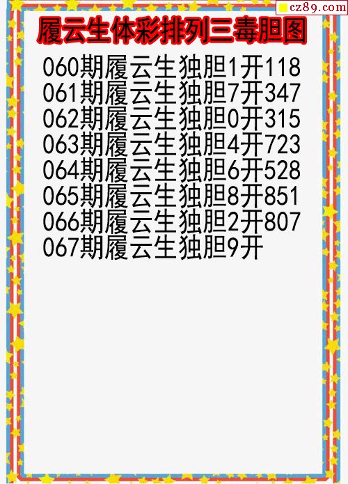 首页 > 排列3图谜 > 26年067期履云生体彩排列三毒胆图