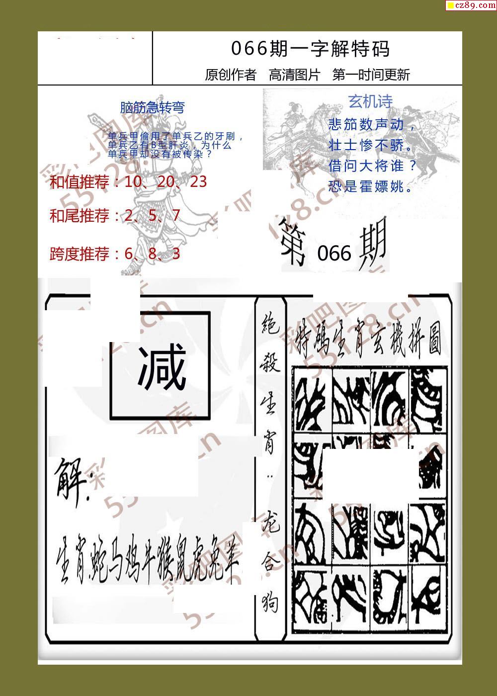 首页 > 福彩3D图谜 > 26年066期一字解特码福彩3d彩报