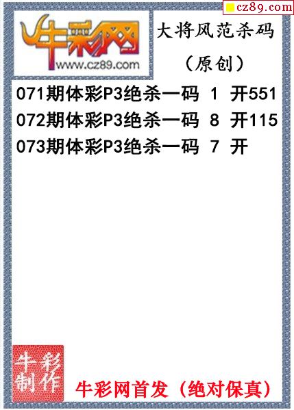 大将风范杀码073期体彩p3图谜(原创)